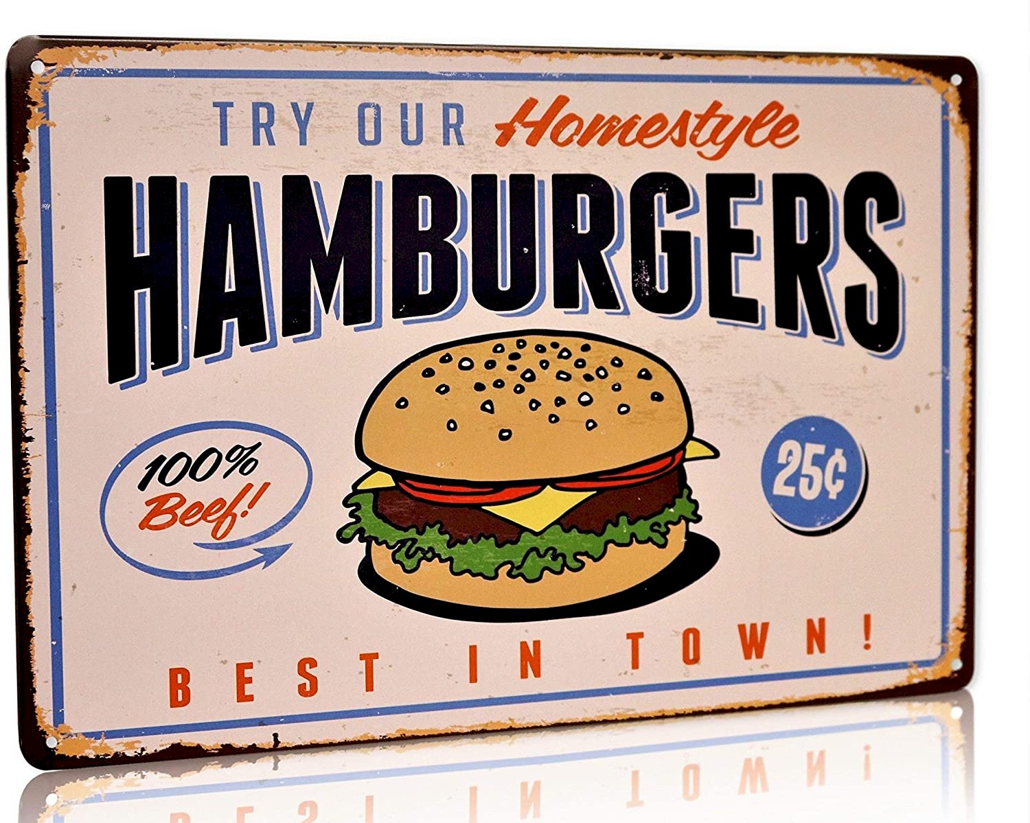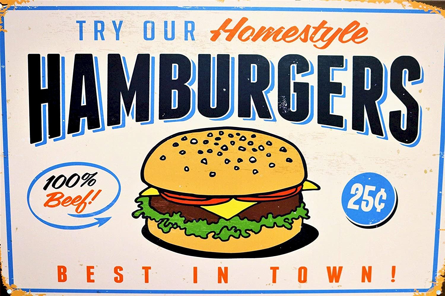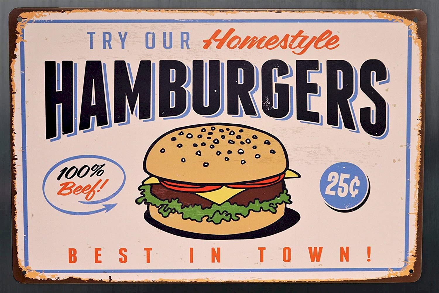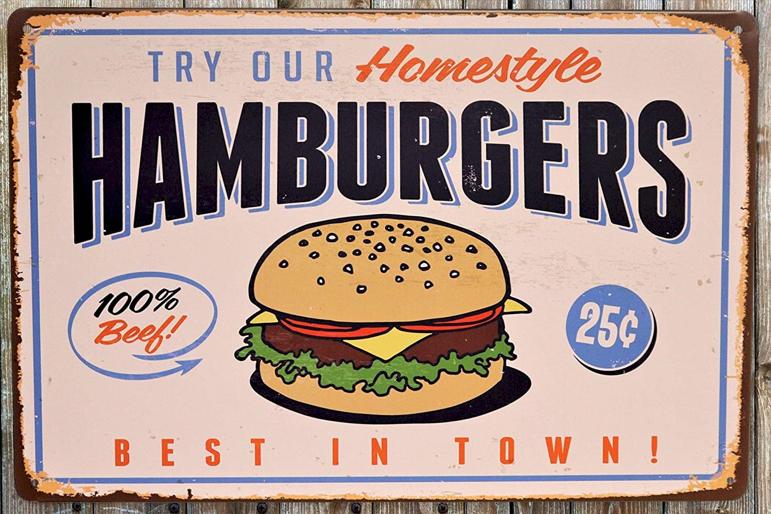 - Homestyle Hamburgers - Try Our Home-style Hamburgers 100% Beef Burgers 25 Best in Town Retro Vintage Sign