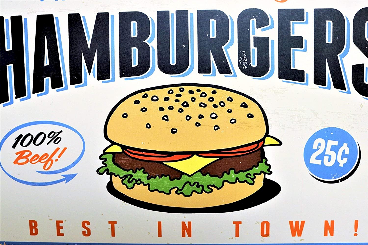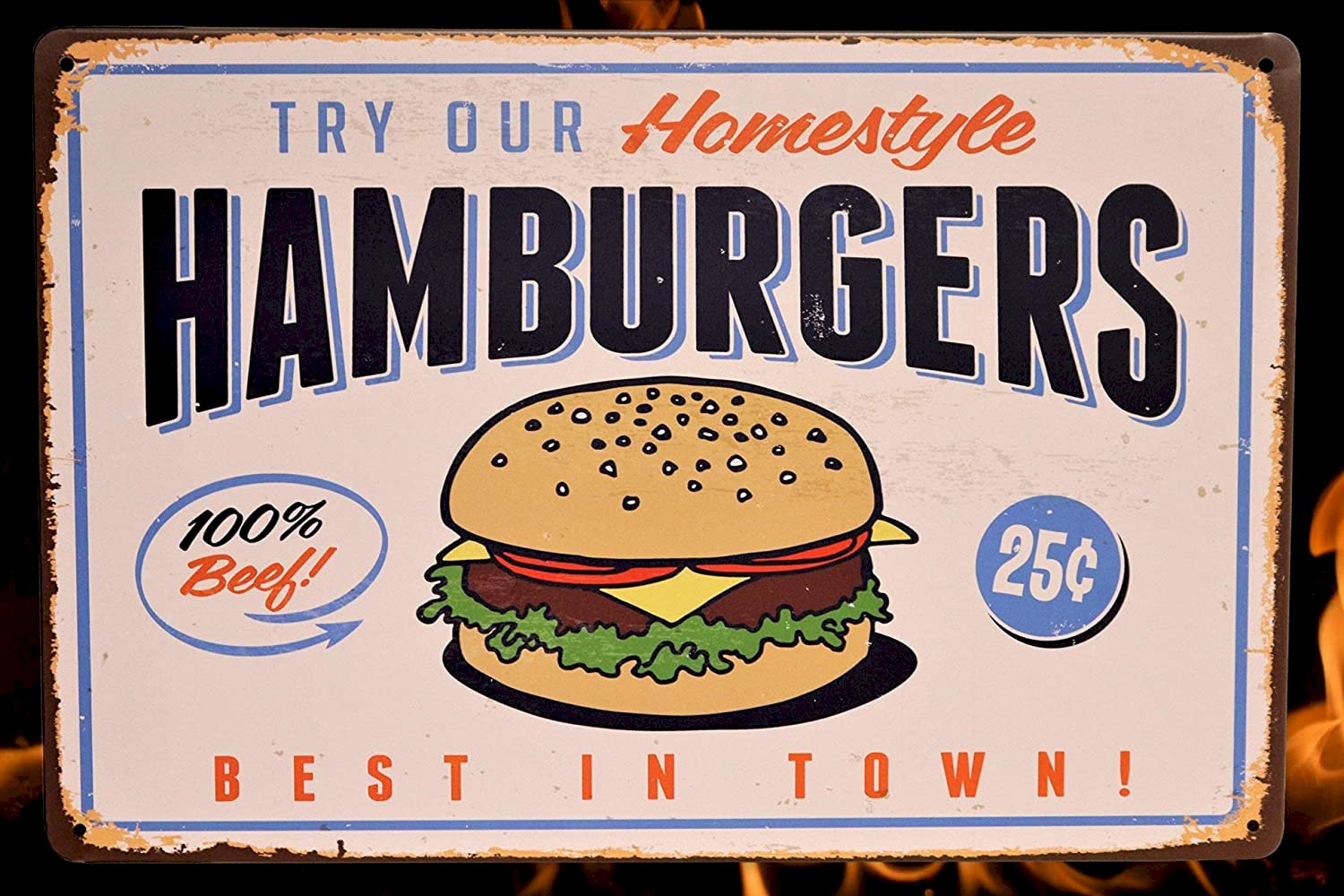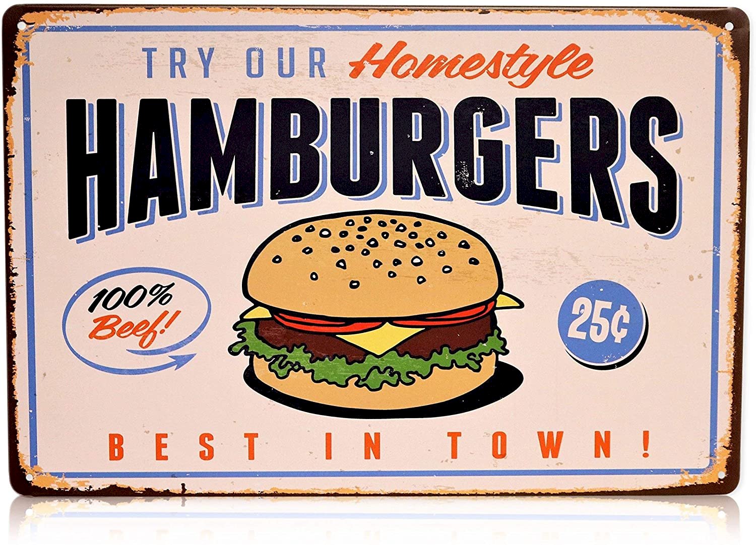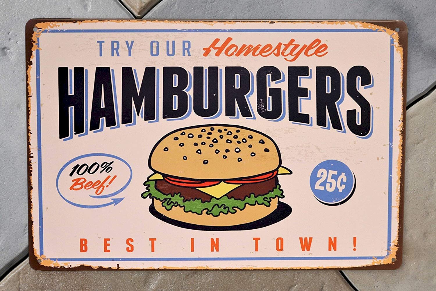 - Homestyle Hamburgers - Try Our Home-style Hamburgers 100% Beef Burgers 25 Best in Town Retro Vintage Sign